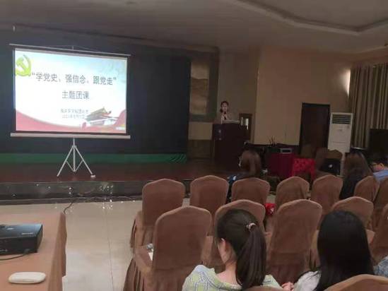 全体青年团员一起重温入团誓词,本次主题团课在激扬的誓词声中拉开序幕。团总支书记胡晓琳以“百年征程”为题,从中国共产党的诞生讲述了我们党的百年奋斗史,提出了学习党史对当代团员青年的重要意义,深入浅出地强调了继承和发扬党的优良作风对思想建设的必要性。希望同学们要努力学习党史,敢于同历史虚无主义作斗争;要对历史有敬畏之心,铭记光辉历史,传承红色基因,争做时代新人;要树牢理想信念,增强“四个意识”、坚定“四个自信”,以实际行动落实“两个维护”,做到学史明理、学史增信、学史崇德、学史力行,以优异成绩献礼建党100周年。