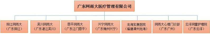 广东网雨大医疗管理有限公司由中山大学管理学院总裁联盟的多位同学于2014年发起成立,是在广东省、福建省连锁投资精神康复专科医院的医疗投资公司。公司目前拥有集预防、治疗、康复为一体的5家连锁精神康复医院。