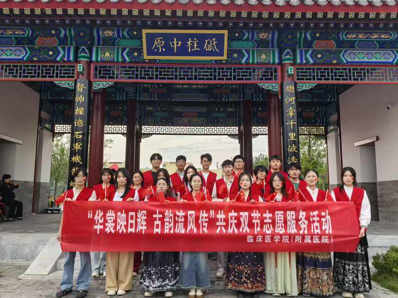 2025年9月26日,在古槐街道县前街社区党支部的指导下,临床医学院(附属医院)志愿服务队团支部于古槐街道成功举办“华裳映日辉,古韵流风传”共庆中秋、国庆双节志愿服务活动。20名青年团员积极参与,在服务中传承文化,于奉献中彰显青春力量。