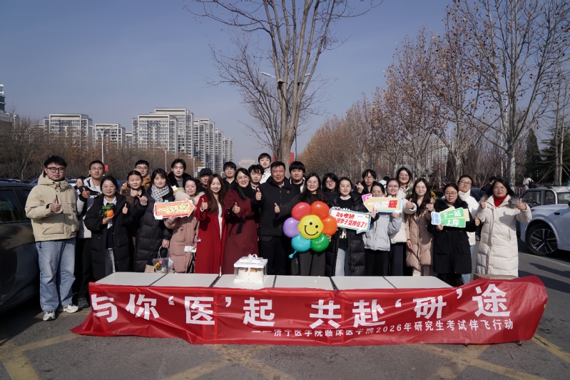 时值冬至,为持续深化“伴飞行动”,凝聚家校育人合力,助力2026年研究生考试。12月21日,临床医学院全体毕业班辅导员组成“伴飞服务团”,联合部分学生家长代表,前往济宁海达行知学校考点,为2026届临床考研学子送去冬日里最真挚的关怀与祝福。