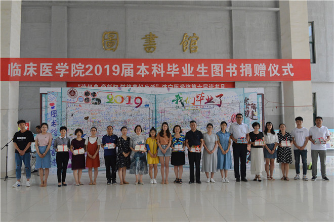 临床医学院党委书记马奎元、副书记尹国才,图书馆负责人及部室主任,临床医学院2019届毕业班辅导员及毕业生代表100余人参加捐赠仪式。