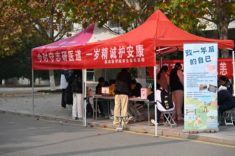 2025年11月16日,临床医学院在太白湖校区南北餐厅之间举办“致一年后的自己”主题活动,引导学生梳理成长感悟、明确阶段目标、激发规划意识,以书信形式记录青春轨迹,留存校园记忆。